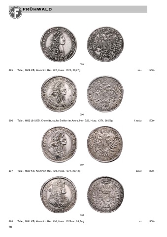 398 Taler, 1691 KB, Kremnitz, Her. 734, Husz. 1372var, 28,34g vz 300,-