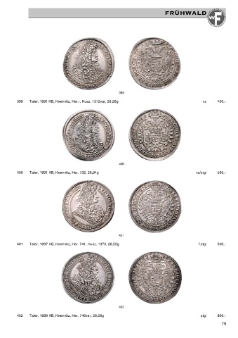 399 Taler, 1691 KB, Kremnitz, Her.-, Husz. 1372var, 28,28g vz 400,-