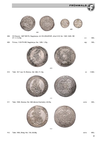 411 Taler, 1695, Breslau, Her. 696 (dieses Exemplar), 28,55g ss/vz 800,-