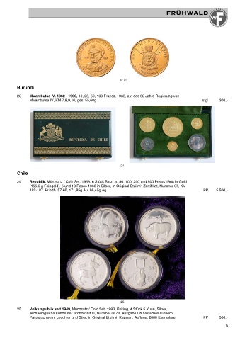 23 Mwambutsa IV. 1962 - 1966, 10, 25, 50, 100 Francs, 1965, auf das 50 Jahre Regierung von