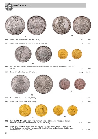 493 Dukat, 1742, Frankfurt, auf die Wahl Karl VII. zum Deutschen Kaiser am 24.1.1742 in Frankfurt,