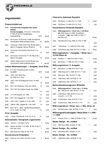 4452 50 Dinar o.D.(1944), B-Y47a, P-52a I 50,00 4474 1000 Dinar 2001, B-R209, P-159 I 10,00