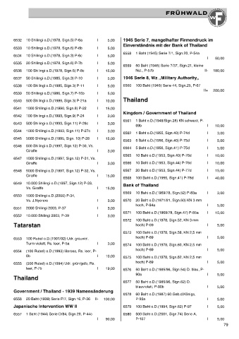 6538 100 Shilingi o.D.(1985, Sign.3) P-11 I 5,00 6560 100 Baht (1946) Serie 44, Sign.25, P-67