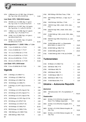 6755 250.000 Lira o.D.(1998, Sign. F-I gleich, 6784 1000 Shillings 1991/Secr., P-34b I 3,00