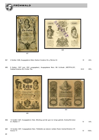 688 5 Gulden 1847 (erst 1851 ausgegeben), Ausgegebene Note. Mit Aufdruck „WERTHLOS“,