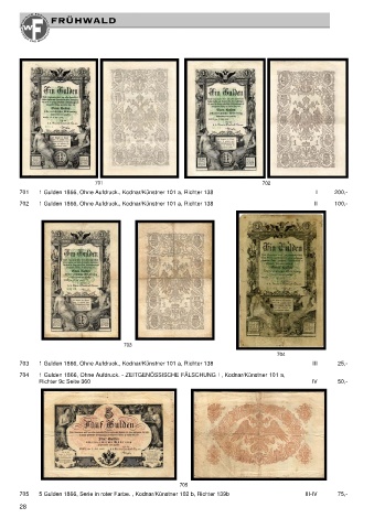 705 5 Gulden 1866, Serie in roter Farbe. , Kodnar/Künstner 102 b, Richter 139b III-IV 75,-