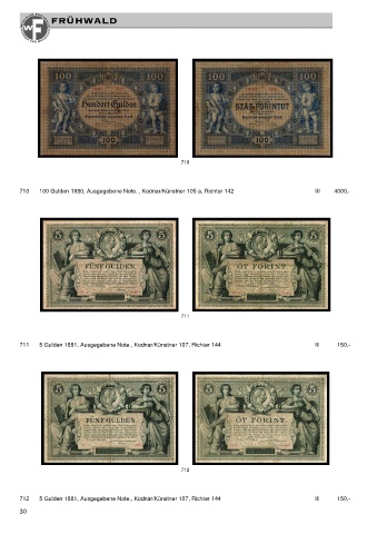 710 100 Gulden 1880, Ausgegebene Note. , Kodnar/Künstner 105 a, Richter 142 III 4000,-