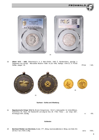 33 Albert 1873 - 1902, Silbermedaille in 2 Mark-Größe, 1892 E, Muldenhütten, geprägt in