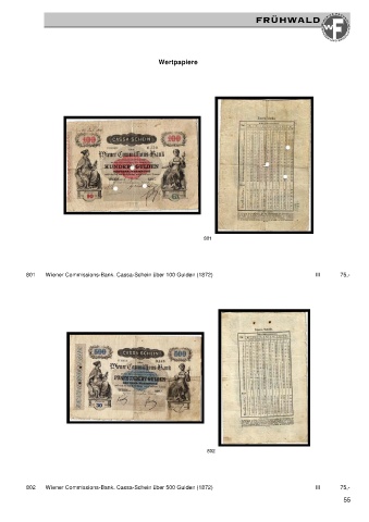 Wertpapiere 801 801 Wiener Commissions-Bank. Cassa-Schein über 100 Gulden (1872) III 75,- 802 802 Wiener Commissions-Bank. Cassa-Schein über 500 Gulden (1872) III 75,- 55