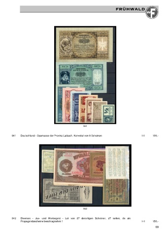 841 841 Deutschland - Sparkasse der Provinz Laibach. Konvolut von 9 Scheinen I-II 100,- 842 842 Diverses - Jux- und Werbegeld - Lot von 27 derartigen Scheinen, zT selten, da als Propagandascheine beschlagnahmt ! I-II 150,- 69