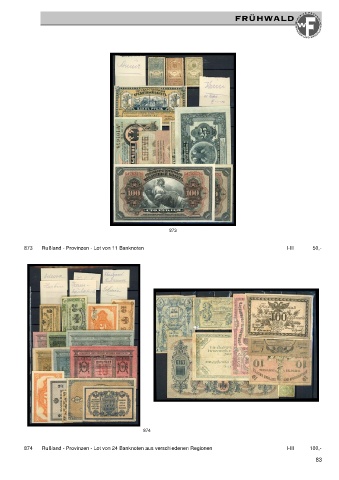 873 873 Rußland - Provinzen - Lot von 11 Banknoten I-III 50,- 874 874 Rußland - Provinzen - Lot von 24 Banknoten aus verschiedenen Regionen I-III 100,- 83
