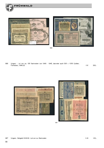 886 886 Ungarn - Lot von ca. 150 Banknoten von 1848 - 1945, darunter auch 500 + 1000 Gulden, Formulare, 1849 (II) I-IV 500,- 887 887 Ungarn - Notgeld 1848/49 - Lot von ca. Banknoten II-III 100,- 88