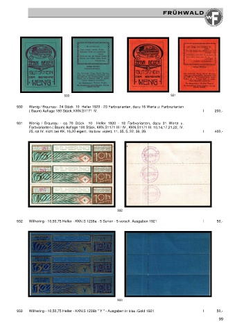 933 Wilhering - 10,50,75 Heller - KKN.S 1236b " Y " - Ausgaben in blau /Gold 1921 I 50,-