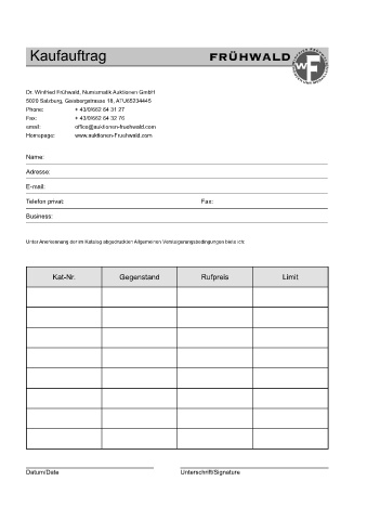 Unter Anerkennung der im Katalog abgedruckten Allgemeinen Versteigerungsbedingungen biete ich: