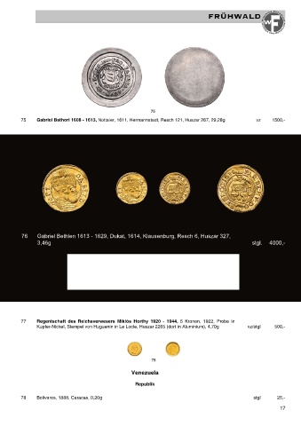 77 Regentschaft des Reichsverwesers Miklós Horthy 1920 - 1944, 5 Kronen, 1922, Probe in