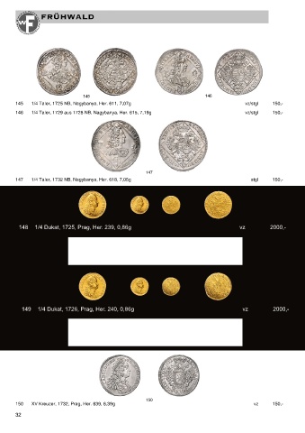 149 1/ 1/4 Dukat, 1726, Prag, Her. 240, 0,86g vz vz 2000,- -