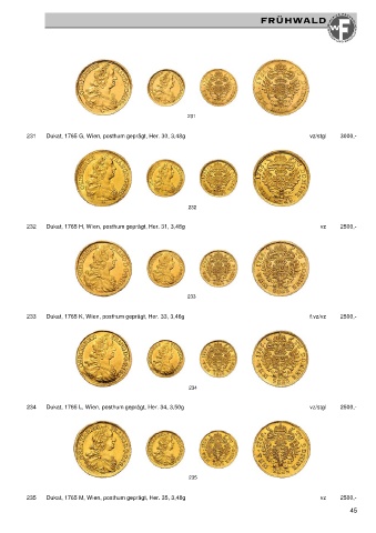 234 Dukat, 1765 L, Wien, posthum geprägt, Her. 34, 3,50g vz/stgl 2500,-