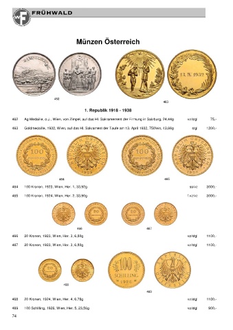 467 20 Kronen, 1923, Wien, Her. 3, 6,80g vz/stgl 1100,-