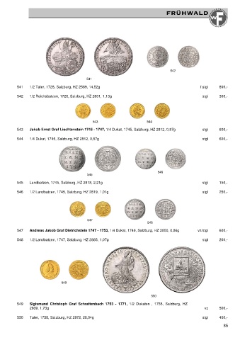547 Andreas Jakob Graf Dietrichstein 1747 - 1753, 1/4 Dukat, 1749, Salzburg, HZ 2850, 0,86g vz/stgl 600,-