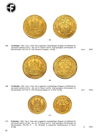 369 10 Dukaten, 1654, Typ 3, Unter dem Legatenhut sechsfeldiges Wappen mit Mittelschild,