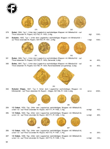 385 1/2 Dukat, 1654, Typ, Unter dem Legatenhut sechsfeldiges Wappen mit Mittelschild,