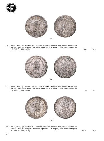 410 Taler, 1661, Typ, Hüftbild der Madonna, im linken Arm das Kind, in der Rechten das