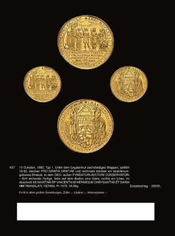 437 10 Dukaten, 1682, Typ 1, Unter dem Legatenhut sechsfeldiges Wappen, seitlich