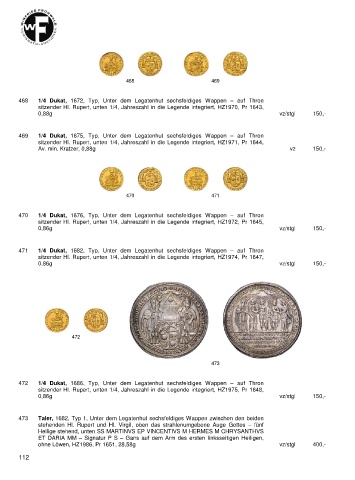 471 1/4 Dukat, 1682, Typ, Unter dem Legatenhut sechsfeldiges Wappen – auf Thron