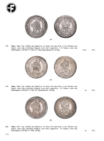 479 Taler, 1669, Typ, Hüftbild der Madonna, im linken Arm das Kind, in der Rechten das