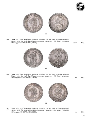 481 Taler, 1671, Typ, Hüftbild der Madonna, im linken Arm das Kind, in der Rechten das