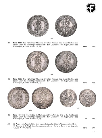 489 Taler, 1686 (85), Typ, Hüftbild der Madonna, im linken Arm das Kind, in der Rechten das