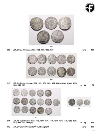 509 LOT, 5 Stück XV Kreuzer: 1681, 1683, 1684, 1685, 1686 ss/vz 100,-