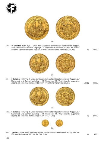 531 6 Dukaten, 1687, Typ 4, Unter dem Legatenhut sechsfeldiges kombiniertes Wappen, auf