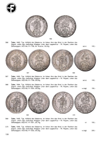 566 Taler, 1692, Typ, Hüftbild der Madonna, im linken Arm das Kind, in der Rechten das