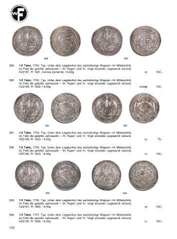 589 1/2 Taler, 1700, Typ, Unter dem Legatenhut das sechsfeldige Wappen mit Mittelschild,