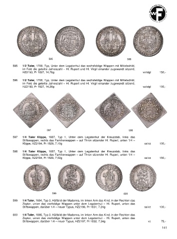 600 1/4 Taler, 1695, Typ 3, Hüftbild der Madonna, im linken Arm das Kind, in der Rechten das