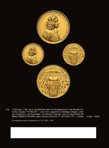 618 10 Dukaten, 1709, Typ 4, Brustbild Harrachs mit Allongeperücke in der Mozetta von