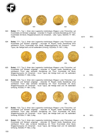 627 Dukat, 1723, Typ 2, Unter dem Legatenhut dreifeldiges Wappen unter Fürstenhut, auf