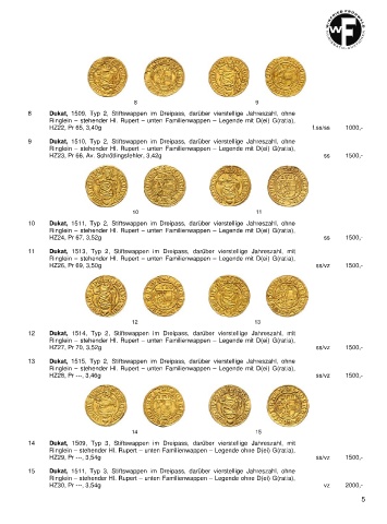 8 Dukat, 1509, Typ 2, Stiftswappen im Dreipass, darüber vierstellige Jahreszahl, ohne