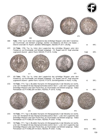 673 1/2 Taler, 1711, Typ 2, Brustbild Harrachs mit Allongeperücke in der Mozetta von rechts,