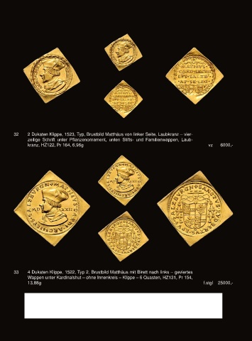 33 4 Dukaten Klippe, 1522, Typ 2, Brustbild Matthäus mit Birett nach links – geviertes
