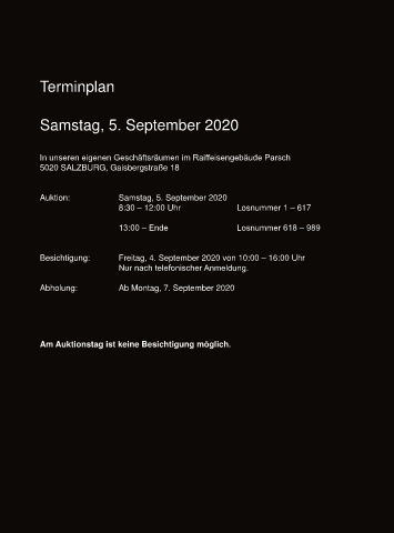 Besichtigung: Freitag, 4. September 2020 von 10:00 – 16:00 Uhr