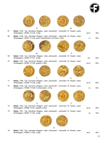 70 Dukat, 1547, Typ, Geviertes Wappen, oben Jahreszahl – stehender Hl. Rupert, unten