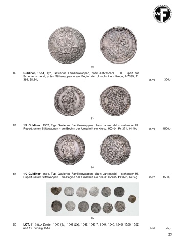 82 Guldiner, 1554, Typ, Geviertes Familienwappen, oben Jahreszahl – Hl. Rupert auf
