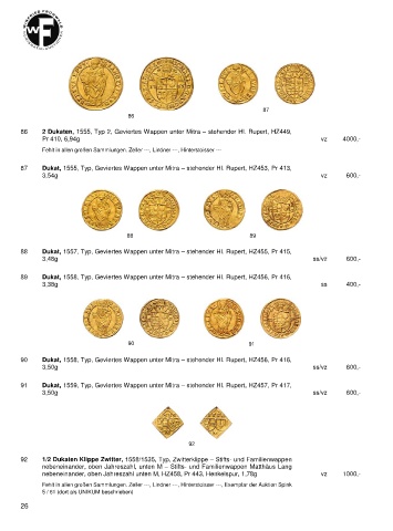 86 2 Dukaten, 1555, Typ 2, Geviertes Wappen unter Mitra – stehender Hl. Rupert, HZ449,