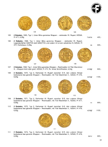 105 2 Dukaten, 1565, Typ 1, Unter Mitra geviertes Wappen – stehender Hl. Rupert, HZ535,