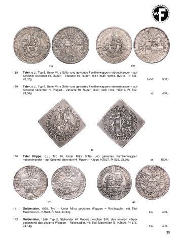 138 Taler, o.J., Typ 5, Unter Mitra Stifts- und geviertes Familienwappen nebeneinander – auf