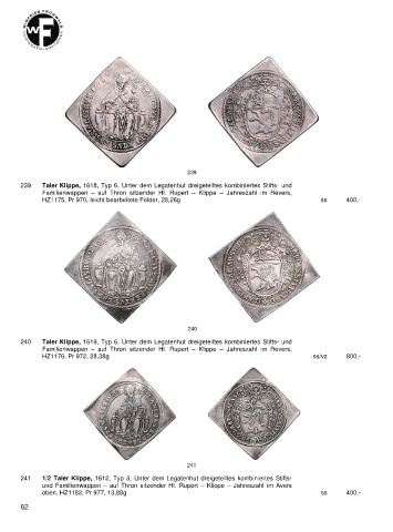 241 1/2 Taler Klippe, 1612, Typ 3, Unter dem Legatenhut dreigeteiltes kombiniertes Stifts-