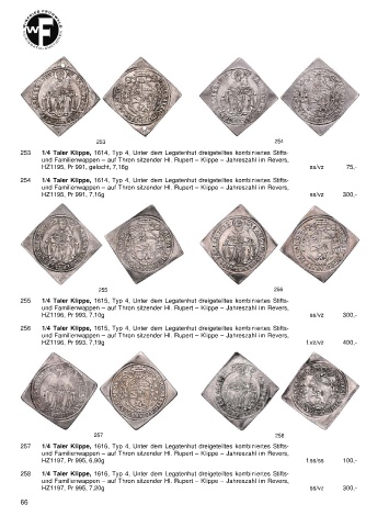 257 1/4 Taler Klippe, 1616, Typ 4, Unter dem Legatenhut dreigeteiltes kombiniertes Stifts-