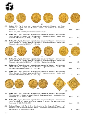 280 Dukat, 1635, Typ 2, Unter dem Legatenhut das dreigeteilte Wappen – auf barockem